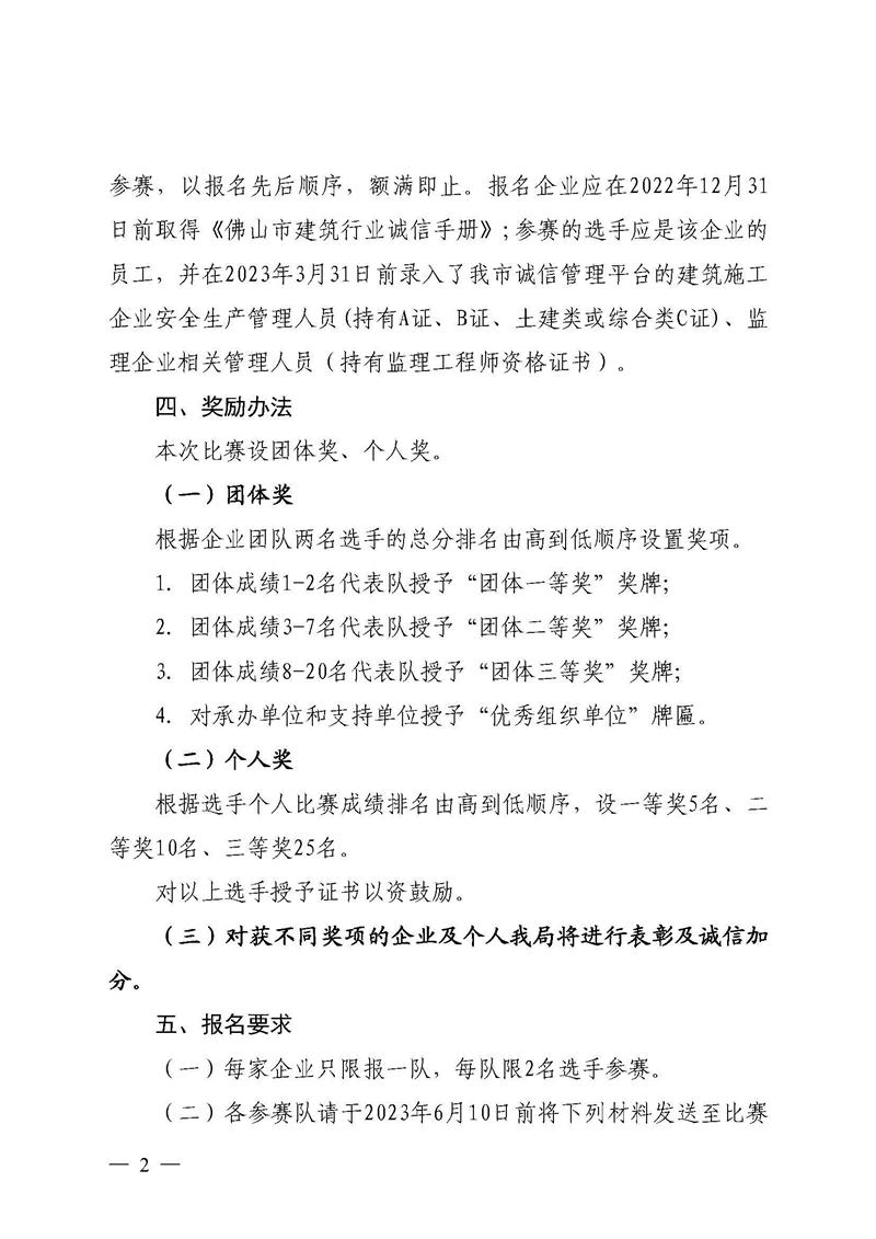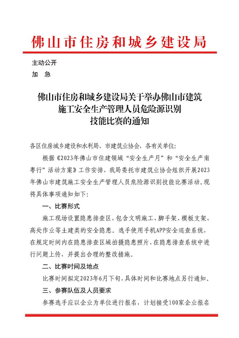 轉(zhuǎn)發(fā)佛山市住房和城鄉(xiāng)建設(shè)局關(guān)于舉辦佛山市建筑施工安全生產(chǎn)管理人員危險源識別技能比賽的通知(2023/06/02)