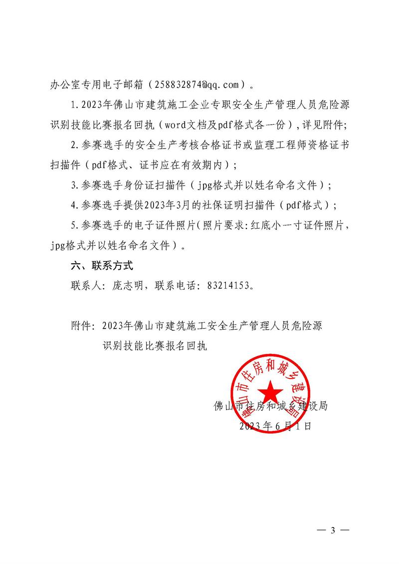 2023年佛山市建筑施工安全生產(chǎn)管理人員危險源識別技能比賽報名回執(zhí)