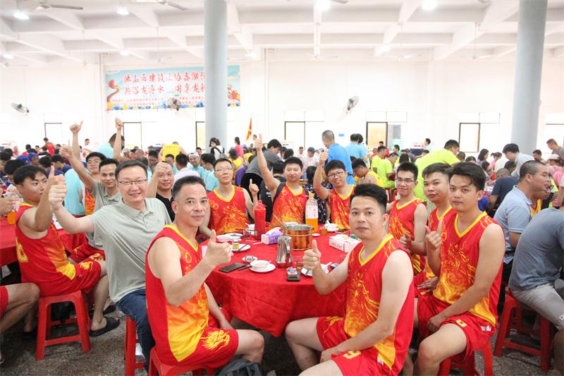 參賽隊(duì)員在煙橋文化樓共享特色龍船飯