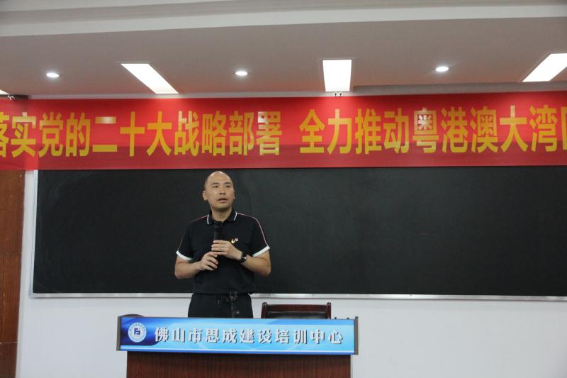 宣講會上,黃江帆老師不僅以精煉的言語高度地概括介紹了黨的二十大報告的主題和基本內容、讓大家深刻地認識到“兩個確立”的決定性意義,同時,給我們展開闡述了中國式現代化的理論基礎和中國特色,以他豐富的經濟學理論知識和調研經驗,結合佛山的產業(yè)優(yōu)勢和實際情況,道出了粵港澳大灣區(qū)建設重大戰(zhàn)略部署給佛山、給行業(yè)的高質量發(fā)展帶來的挑戰(zhàn)和機遇。最后,他還淺談了一下佛山參與大灣區(qū)建設的對策,引起了大家的思考和共鳴。