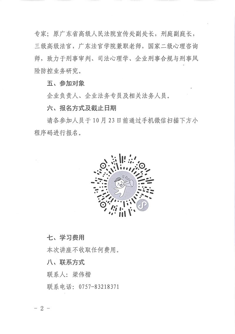 關(guān)于舉辦民營企業(yè)刑事法律風(fēng)險(xiǎn)防控專題講座的通知(2023/10/17)
