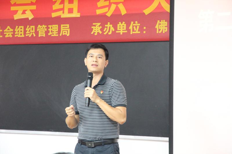 佛山市社會組織黨委副書記袁金偉作開課前的學(xué)習(xí)動員講話