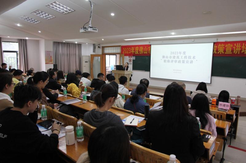 為切實做好我市建筑工程技術(shù)專業(yè)技術(shù)人才職稱評審申報工作,讓廣大專技人員加深對職稱評審政策、評價標準條件的理解,提高申報材料的填寫質(zhì)量,在開啟佛山市2023年度職稱評審工作之際,我會于11月14日下午以現(xiàn)場講授和線上同步直播的培訓(xùn)模式進行詳細的政策宣講。這期培訓(xùn)宣講,來自人社系統(tǒng)的工作人員及專技人員200多人到現(xiàn)場參訓(xùn),線上視頻號直播觀看人數(shù)也高達772人。