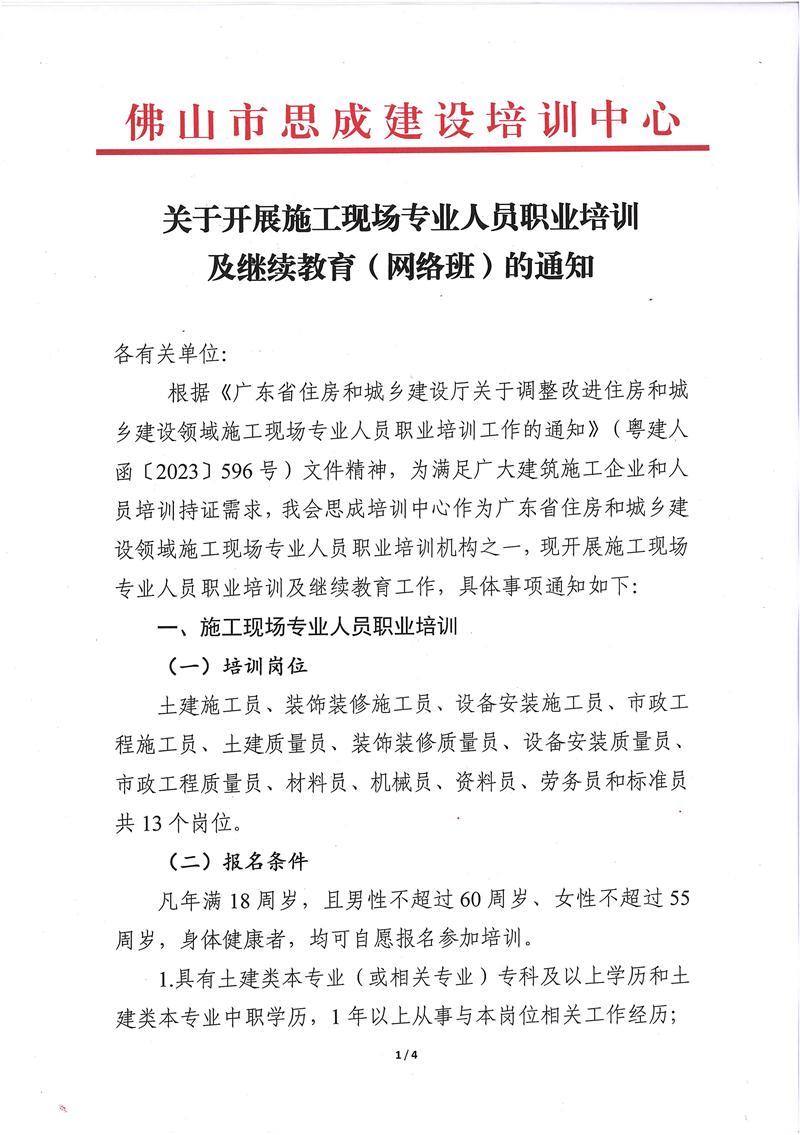 關(guān)于開(kāi)展施工現(xiàn)場(chǎng)專(zhuān)業(yè)人員職業(yè)培訓(xùn)及繼續(xù)教育(網(wǎng)絡(luò)班)的通知(2024/02/01)