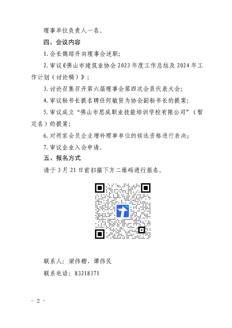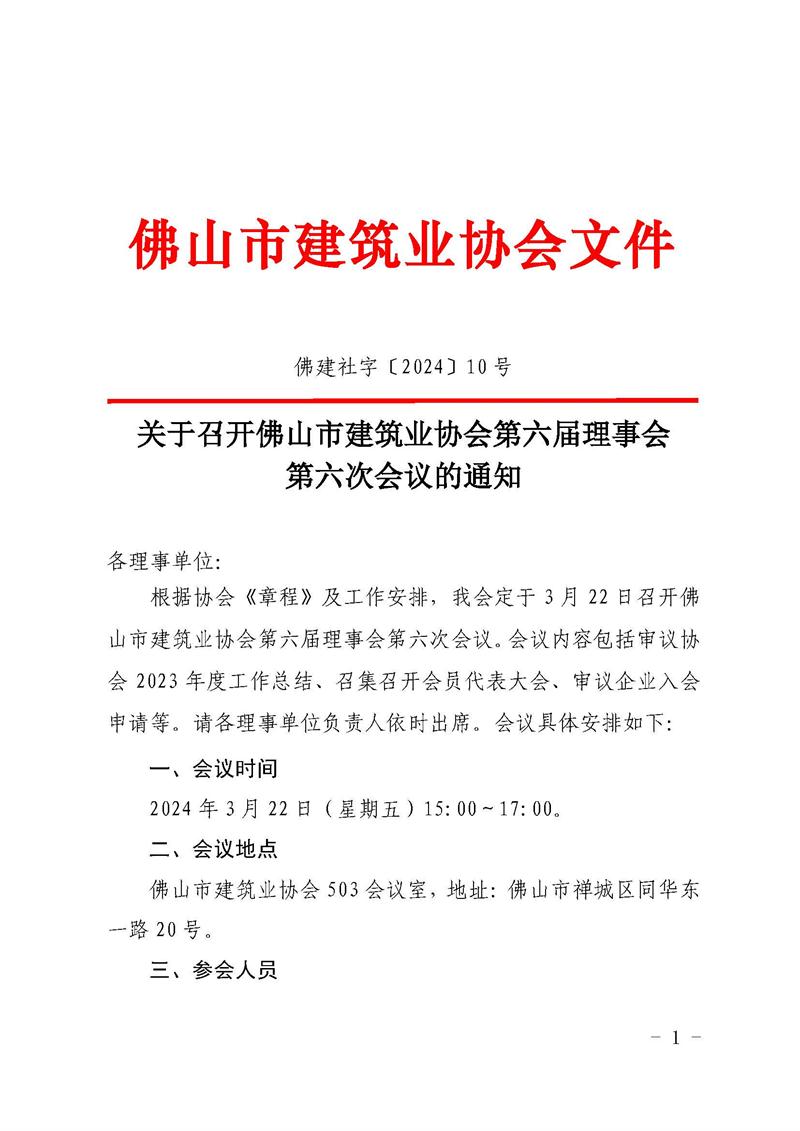 關(guān)于召開佛山市建筑業(yè)協(xié)會第六屆理事會第六次會議的通知(佛建社字〔2024〕10號)