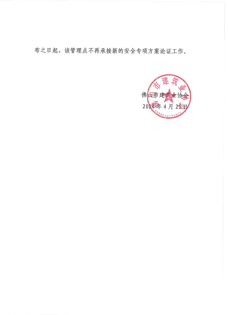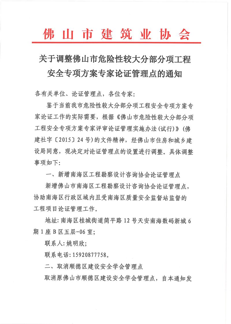 關(guān)于調(diào)整佛山市危險性較大分部分項工程安全專項方案專家論證管理點的通知(2024/04/25)