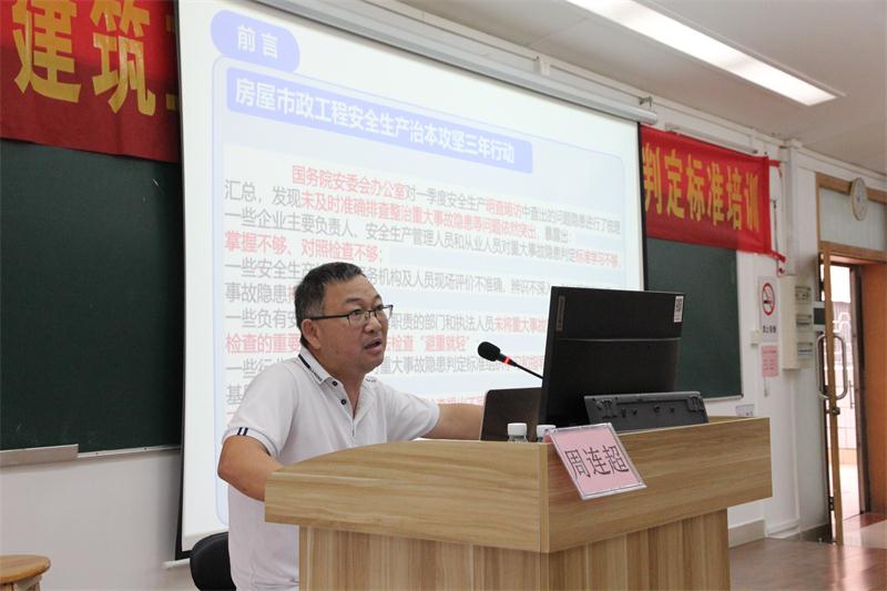 培訓(xùn)由市住建局質(zhì)安二科吳奎副科長作開班動員講話,吳科指出,提高房屋建筑工程生產(chǎn)安全重大隱患的判斷能力是非常迫切的,希望大家通過今天的培訓(xùn),將知識運用到實踐當中去。省級專家周連超高級工程師圍繞《房屋市政工程生產(chǎn)安全重大事故隱患判定標準(2022版)》進行政策解讀,并結(jié)合省內(nèi)外的實際案例和實踐經(jīng)驗,對事故隱患判定進行了詳細而深入的培訓(xùn)宣貫。