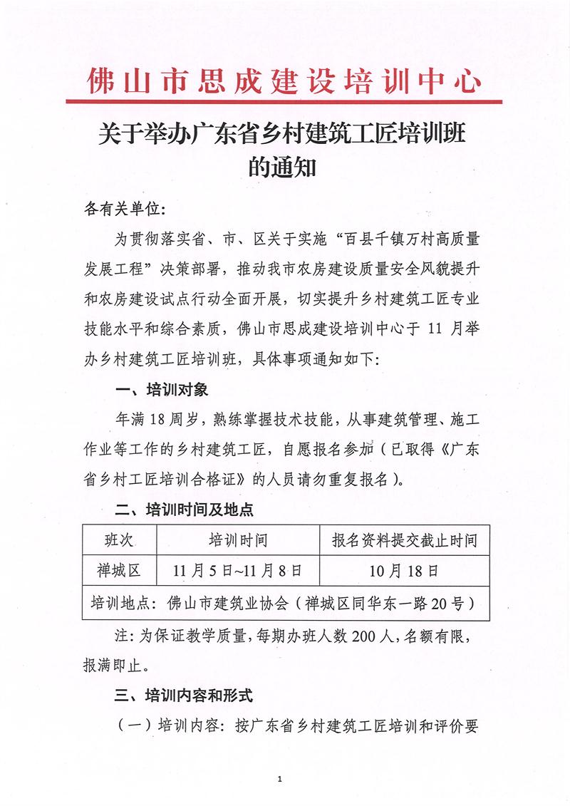 關(guān)于舉辦廣東省鄉(xiāng)村建筑工匠培訓(xùn)班的通知(2024/09/25)