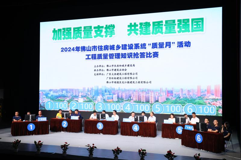 由佛山市住房和城鄉(xiāng)建設(shè)局主辦、我會承辦、廣東大瀝建筑工程有限公司、廣東旺標(biāo)建設(shè)工程有限公司、佛山市順德區(qū)龍江鎮(zhèn)建筑工程有限公司大力支持的“2024年佛山市住房城鄉(xiāng)建設(shè)系統(tǒng)‘質(zhì)量月’活動工程質(zhì)量管理知識搶答比賽”,經(jīng)過了筆試進階、搶答初賽,歷時大半個月,終于10月12日在佛山粵劇院進行搶答半決賽、決賽并圓滿成功。