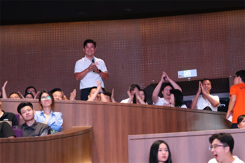 現(xiàn)場觀眾為答對互動題目的幸運兒鼓掌喝彩