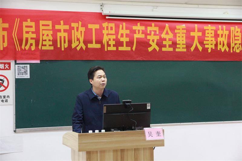 培訓由市住建局質(zhì)安二科吳奎副科長作開班動員講話。吳科強調(diào),這個最新版的判定標準進行了多個方面細節(jié)的補充,明確了施工安全管理的要求,增加了更多可能導致重大事故的具體情形,希望大家都能學好、用好。通過今天的培訓,不僅要深刻認識新標準的重要性、堅決抓好標準的落地執(zhí)行,還要結(jié)合“治本攻堅三年行動”,扎實推動重大事故隱患動態(tài)清零,確保全市建筑施工安全生產(chǎn)形勢穩(wěn)定。
