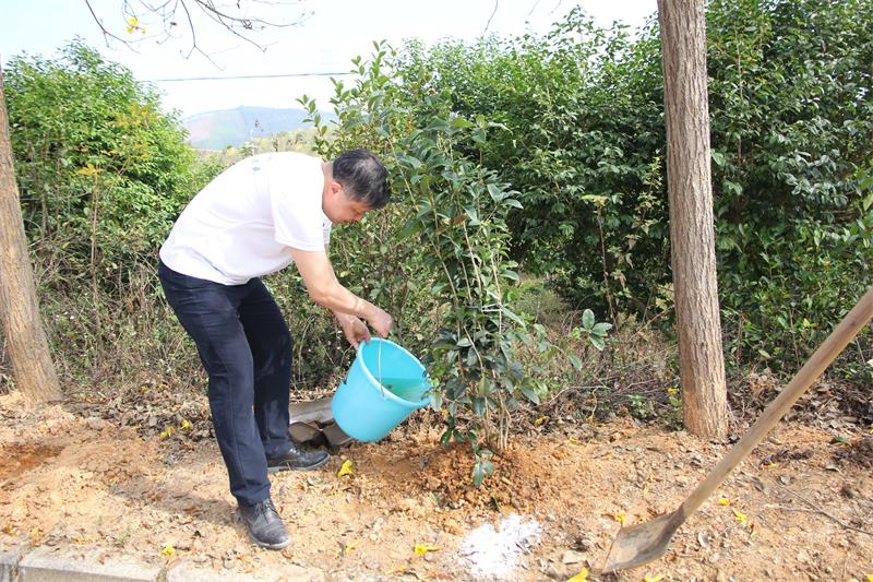 植樹活動正式開始之前,文典村村支部書記李明章向大家介紹了本村的情況、地貌和產(chǎn)業(yè)發(fā)展。隨后,在廣闊的山間,佛山市住房和城鄉(xiāng)建設(shè)局四級調(diào)研員、高明區(qū)更合鎮(zhèn)文典村駐村第一書記林建軍與大部隊一同賣力地?fù)]舞鋤頭挖泥、認(rèn)真地施肥、繁忙地運(yùn)送山泉水、細(xì)心地澆灌樹苗,大家通力合作,盡管馬不停蹄、大汗淋漓也忙得不亦樂乎。經(jīng)過一個多小時的勞作,看著一棵棵植好的樹苗,大家都滿心歡喜,拍照欣賞著自己的勞動成果同時感嘆著鄉(xiāng)村振興帶來的蓬勃發(fā)展。