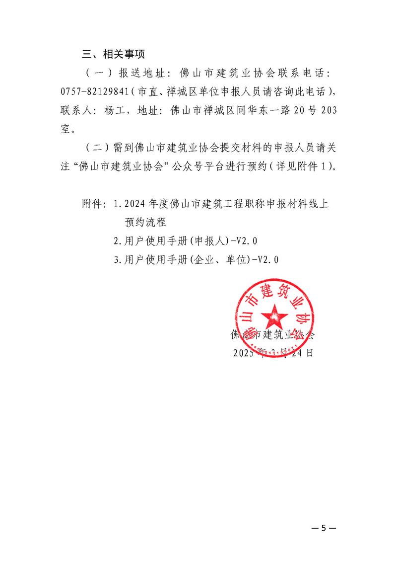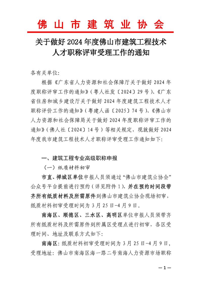 關(guān)于做好2024年度佛山市建筑工程技術(shù)人才職稱評審受理工作的通知(2025/03/24)
