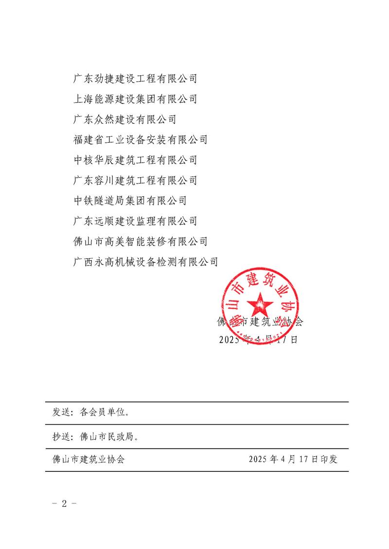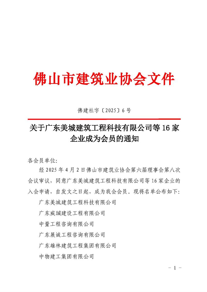 關(guān)于廣東美城建筑工程科技有限公司等16家企業(yè)成為會員的通知(佛建社字〔2025〕6號)