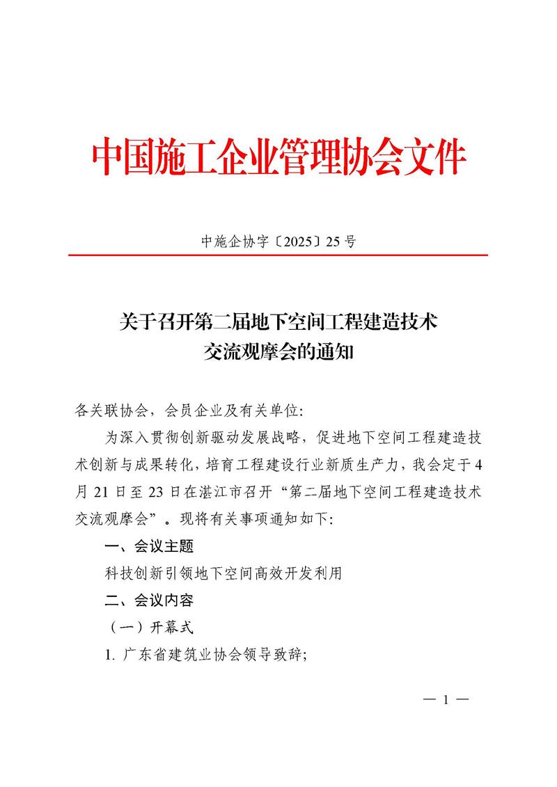 關(guān)于召開第二屆地下空間工程建造技術(shù)交流觀摩會的通知(2025/04/18)