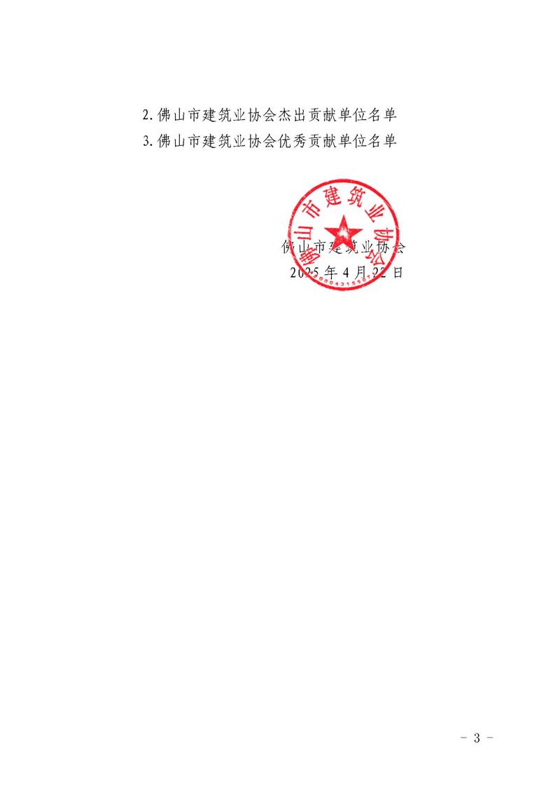 佛山市建筑業(yè)協(xié)會杰出貢獻單位名單
