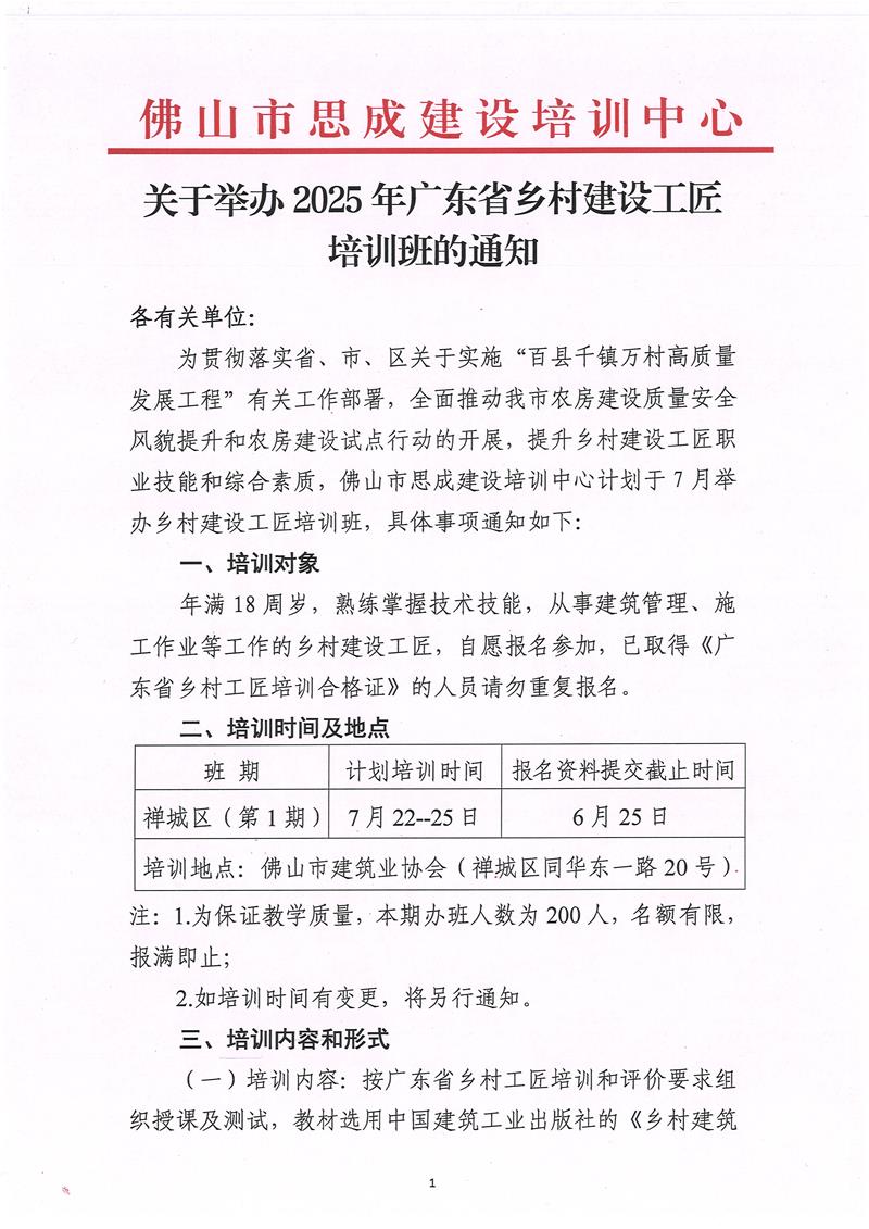 關(guān)于舉辦2025年廣東省鄉(xiāng)村建設(shè)工匠培訓(xùn)班的通知(2025/06/09)