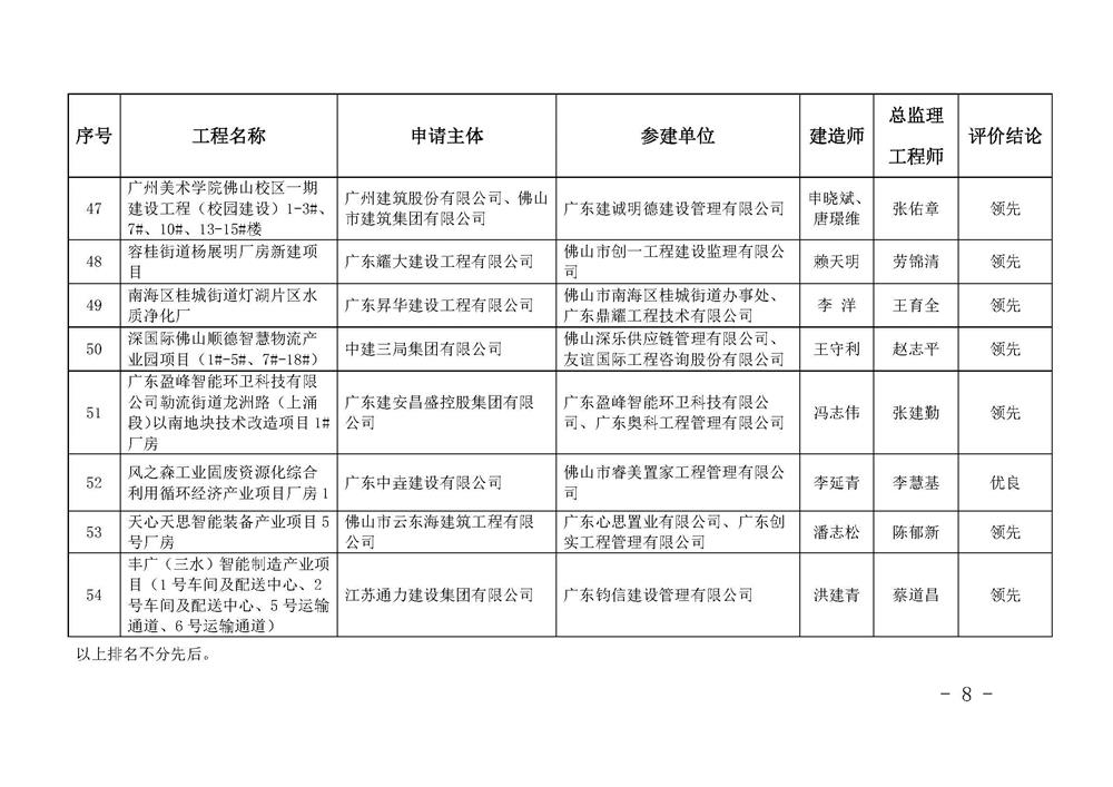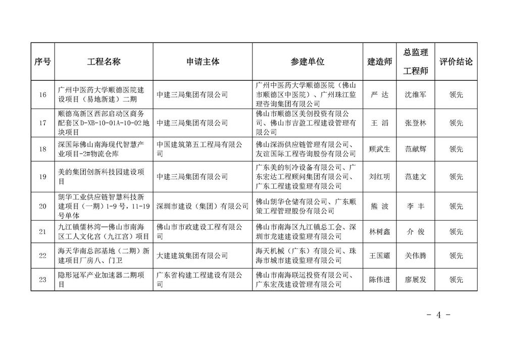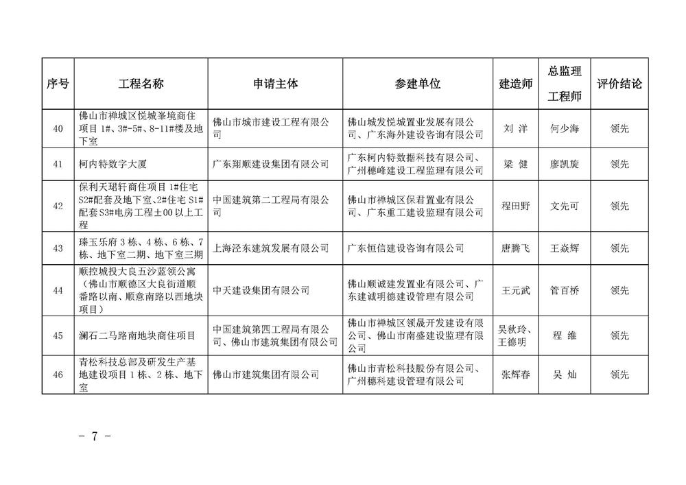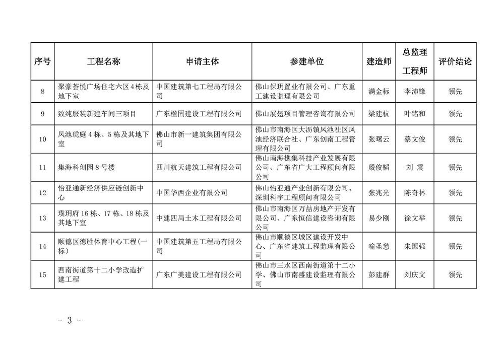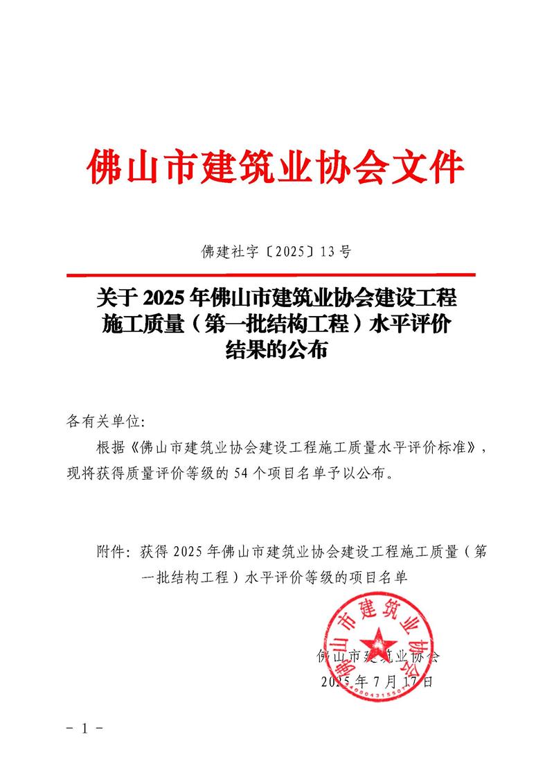 關(guān)于2025年佛山市建筑業(yè)協(xié)會(huì)建設(shè)工程施工質(zhì)量(第一批結(jié)構(gòu)工程)水平評(píng)價(jià)結(jié)果的公布(佛建社字〔2025〕13號(hào))