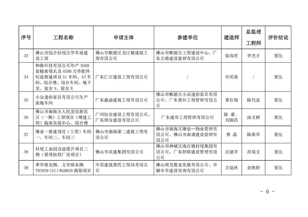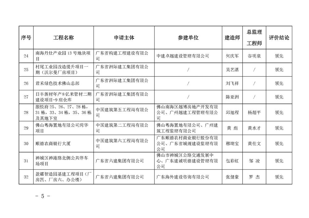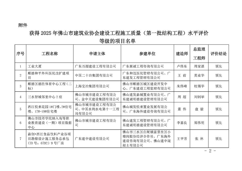獲得2025年佛山市建筑業(yè)協(xié)會(huì)建設(shè)工程施工質(zhì)量(第一批結(jié)構(gòu)工程)水平評(píng)價(jià)等級(jí)的項(xiàng)目名單
