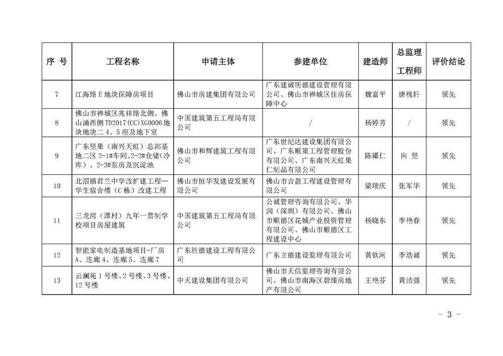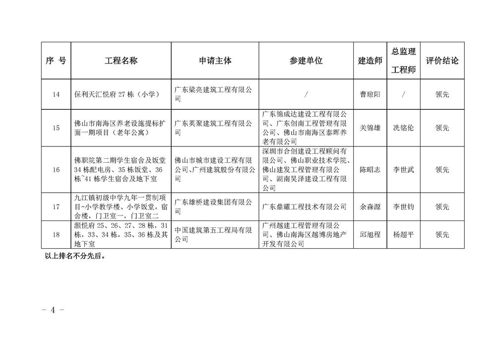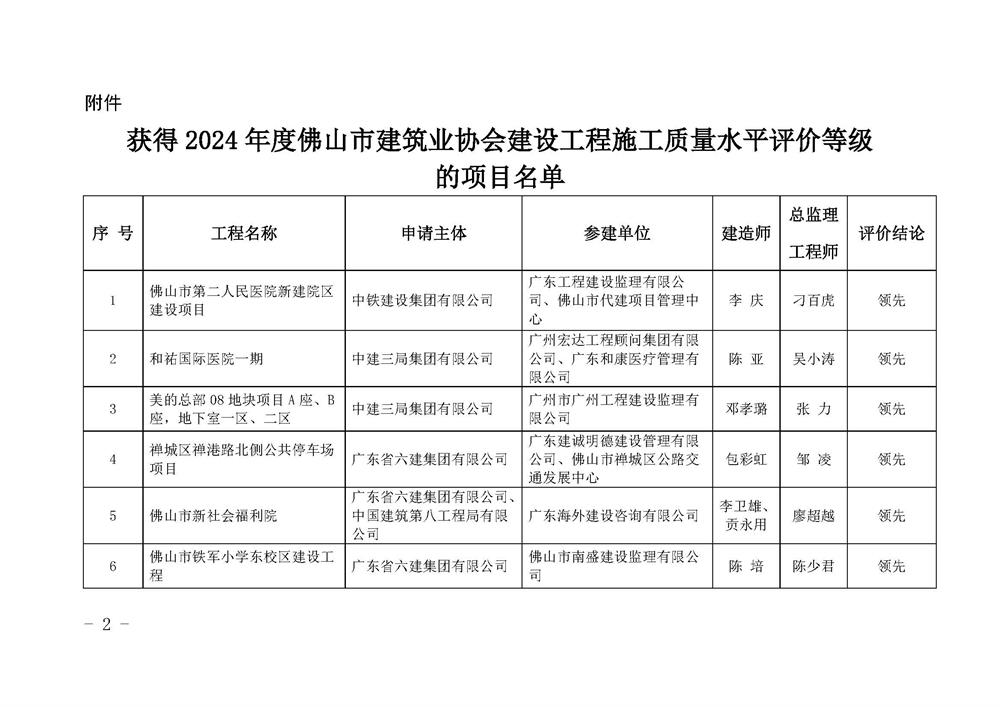 獲得2024年度佛山市建筑業(yè)協(xié)會(huì)建設(shè)工程施工質(zhì)量水平評(píng)價(jià)等級(jí)的項(xiàng)目名單