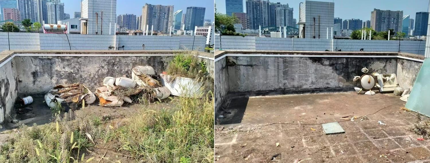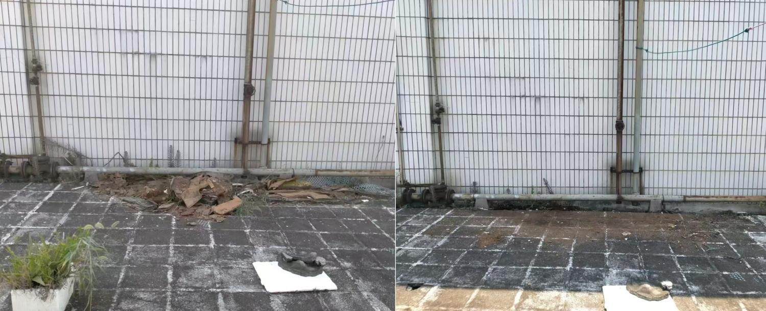 對(duì)此,我們馬上行動(dòng)起來,市建協(xié)于2025年7月26日晚,自發(fā)組織協(xié)會(huì)的黨員和工作人員8人,全力支持當(dāng)?shù)胤牢脺缥霉ぷ鳌R钊,在黨支部書記雷毅文的帶領(lǐng)下,協(xié)會(huì)的黨員和工作人員帶上裝備和工具,一大早就來到整治點(diǎn)“大干一場”,掃積水、翻盆罐、拔雜草、理雜物、清垃圾、即消殺……盡管頭頂烈日、腳踩燙土,大家都動(dòng)作利索、毫不含糊。歷經(jīng)2個(gè)多小時(shí)的賣力清理,樓頂恢復(fù)了昔日的干凈,又一個(gè)蚊蟲孳生源被我們及時(shí)掐滅了。