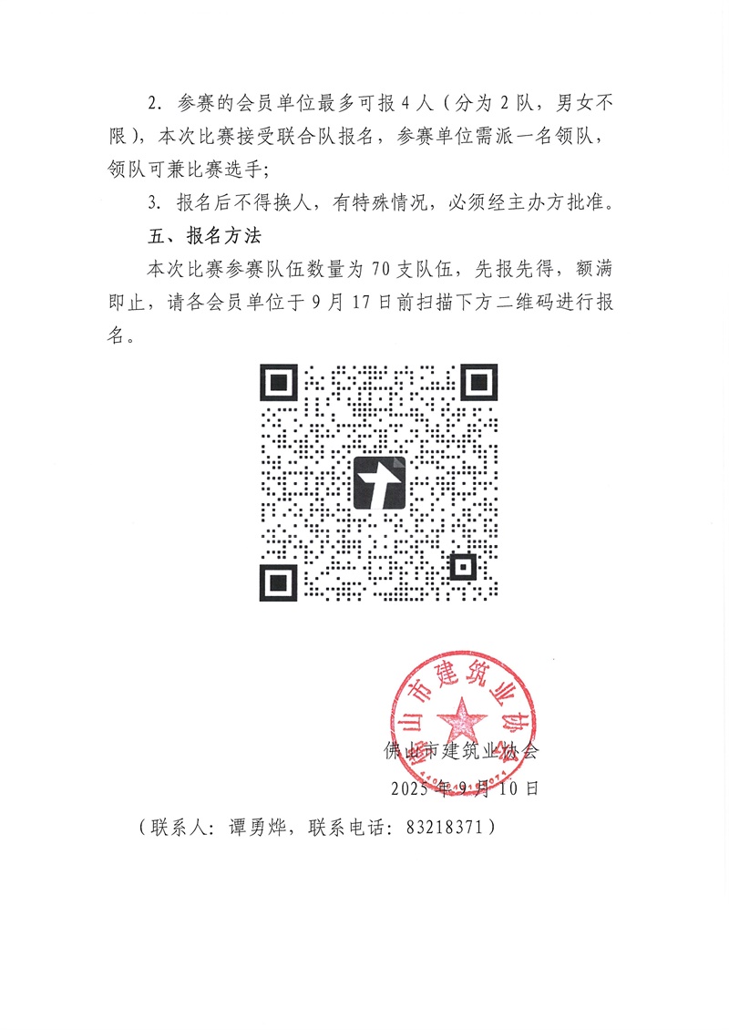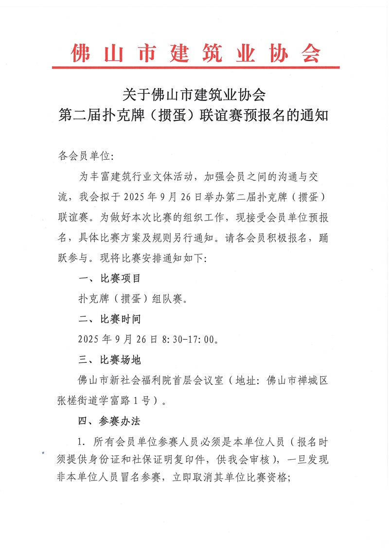 關(guān)于佛山市建筑業(yè)協(xié)會第二屆撲克牌(摜蛋)聯(lián)誼賽預(yù)報名的通知(2025/09/11)