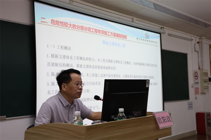 佛山市房建集團(tuán)有限公司總工程師歐陽(yáng)政向在場(chǎng)的候選入庫(kù)專(zhuān)家進(jìn)行“危大方案”評(píng)審要點(diǎn)的詳細(xì)解釋和案例分析